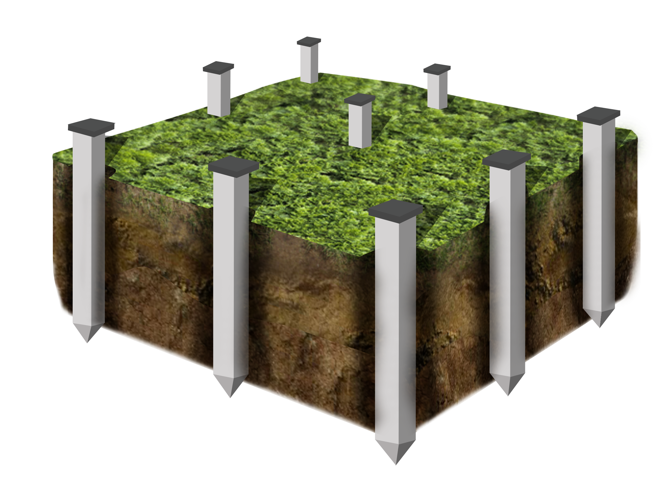 Забиваются в землю с шагом от 1 до 3 метров по всей площади будущего строения, а также на стыках внутренних стен. Шаг определяется архитектурой планируемой постройки.